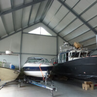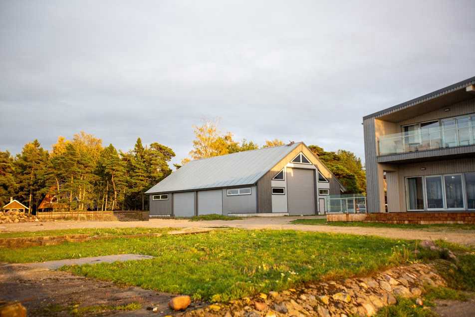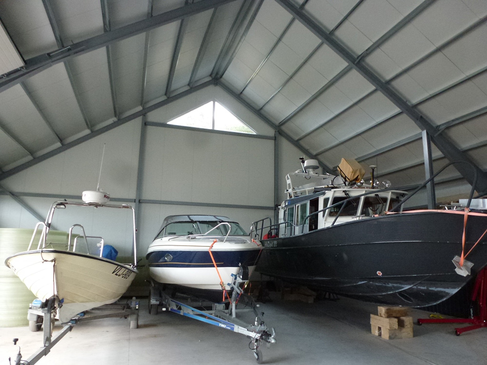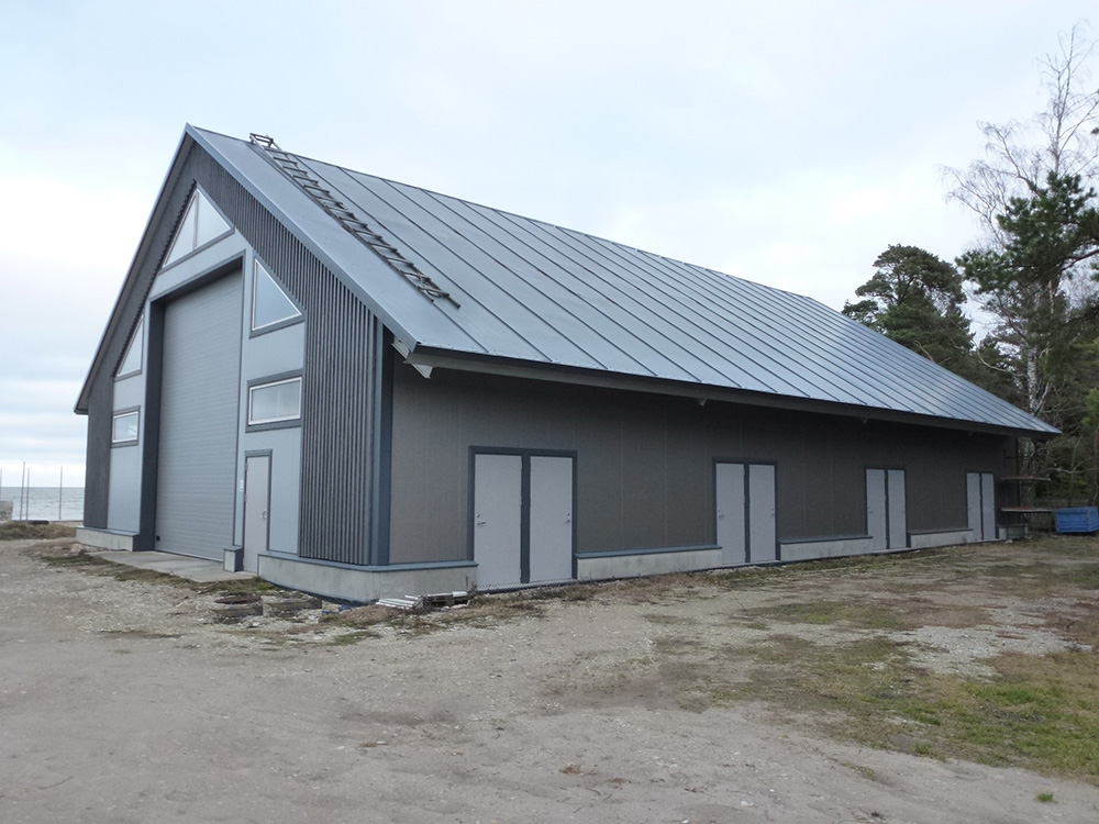 Soojustatud paadihallis ( valminud 2015 a.) on 400 m² põrandapinda. Kaks ust kõrgusega 3,5 m, laiusega 5,8 m ja üks kõrgusega 6 m ja laiusega 5,6 m. Külaliste käsutuses on seitse 7,5 m² eraldi juurdepääsuga lukustatavat panipaika. Hall on sobilik vesiviljeluseks. Suvel on võimalik korraldada erinevaid üritusi ( pulmad, kontserdid, suvepäevad jn ). Merepoole avanevad suured uksed lubavad nautida kauneid vaated ning katus kaitseb ootamatute vihmahoogude eest.