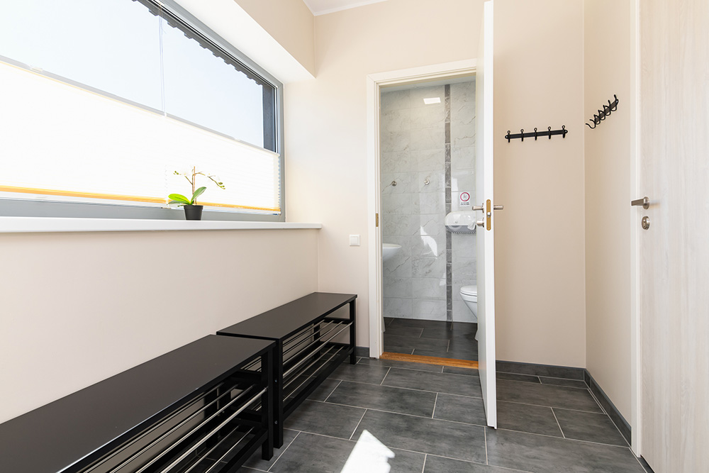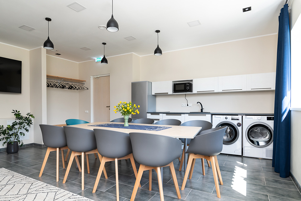 - kööginurk (kraanikauss, mikrolaineahi, nõudepesumasin, pliit kahe plaadiga, veekeetja, külmkapp,